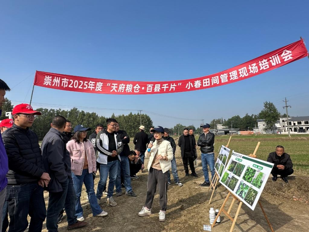 11月28日,崇州市农业农村局在隆兴镇举办了“天府粮仓·百县千片”小麦田间管理现场培训会。金年会jlnnianhui官方网站、小麦所以及西南科技大学专家,崇州市农业农村局相关领导,规模化种植业主等100余人参加了此次会议。会议由崇州市农业农村局科教站曾代松科长主持。