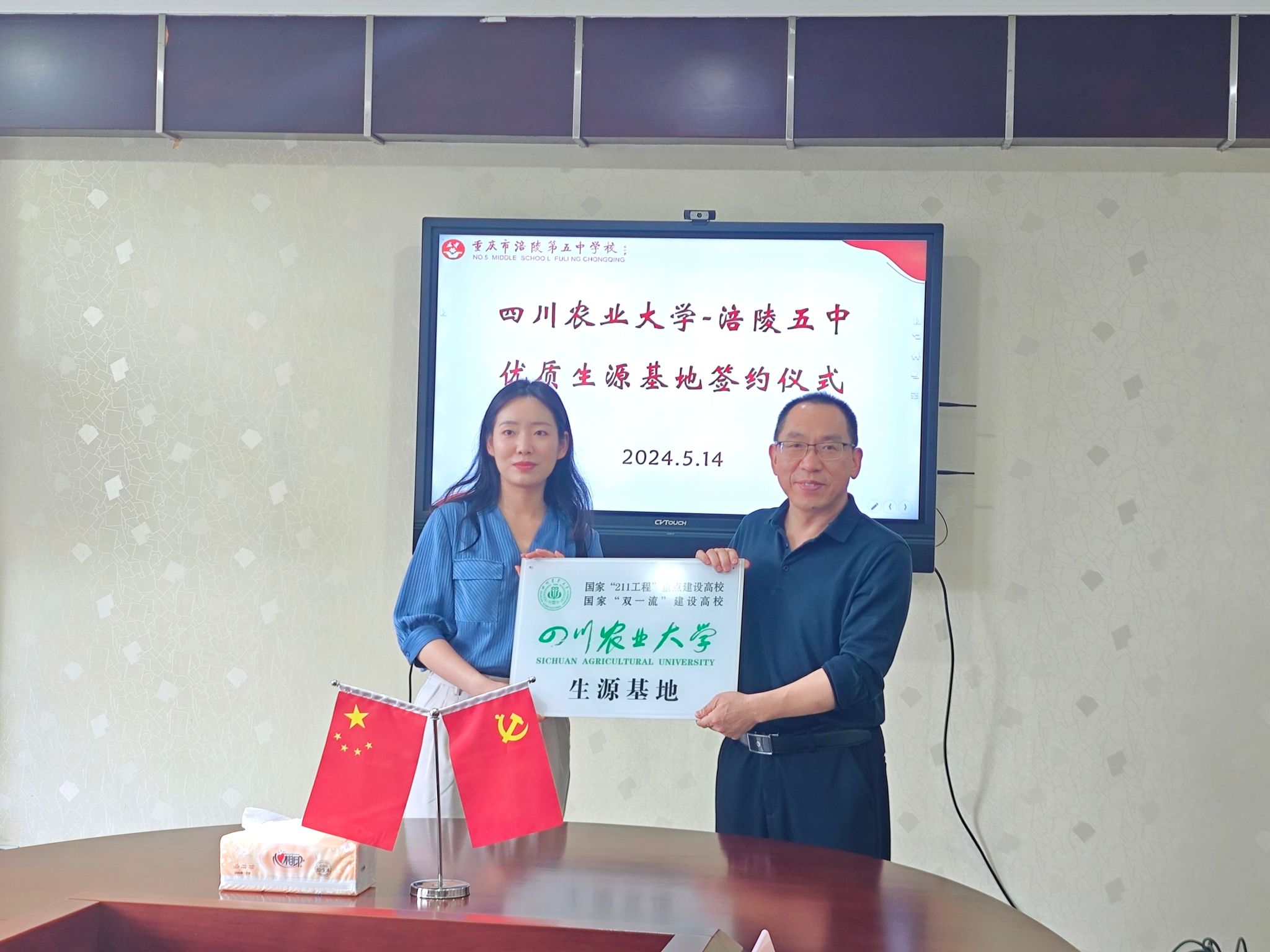 5月13日至14日,jlnnianhui官方网站党委副书记闫宇薇及招生专员贾佳代表金年会,与重庆市第十一中学校、重庆市涪陵第五中学校进行了深入的交流,并成功签约共建“优质生源基地”,同时举行了庄重的授牌仪式。此次活动得到了两所中学领导、年级主任及教师代表的热烈支持与积极参与。